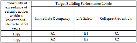 The target building performance levels refer to the state of damage in the structure defined through three limit states, namely Immediate Occupancy (A), Life Safety (B) and Collapse Prevention (C).