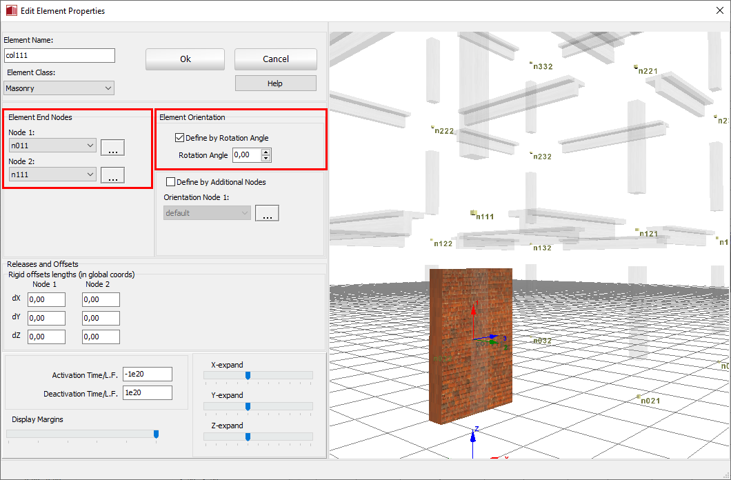 It is noted that the possibility of defining an activation (and deactivation) time/L.F. is provided within each element. The default values are -1e20 for activation (in order to cater for cyclic pushover analysis) and 1e20 for deactivation; this means that the element is activated at the beginning of any analysis and it will not be deactivated.