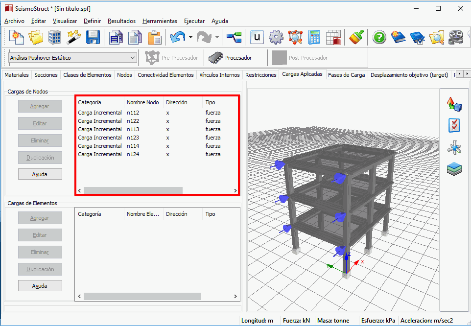 - Durante la evaluación de la capacidad resistente horizontal de estructuras no simétricas, los usuarios deben tener la precaución de considerar la aplicación de las cargas incrementales en ambas direcciones (es decir, ejecutar dos análisis de pushover), para poder identificar la capacidad de la estructura tanto en la dirección "fuerte" como en la "débil".