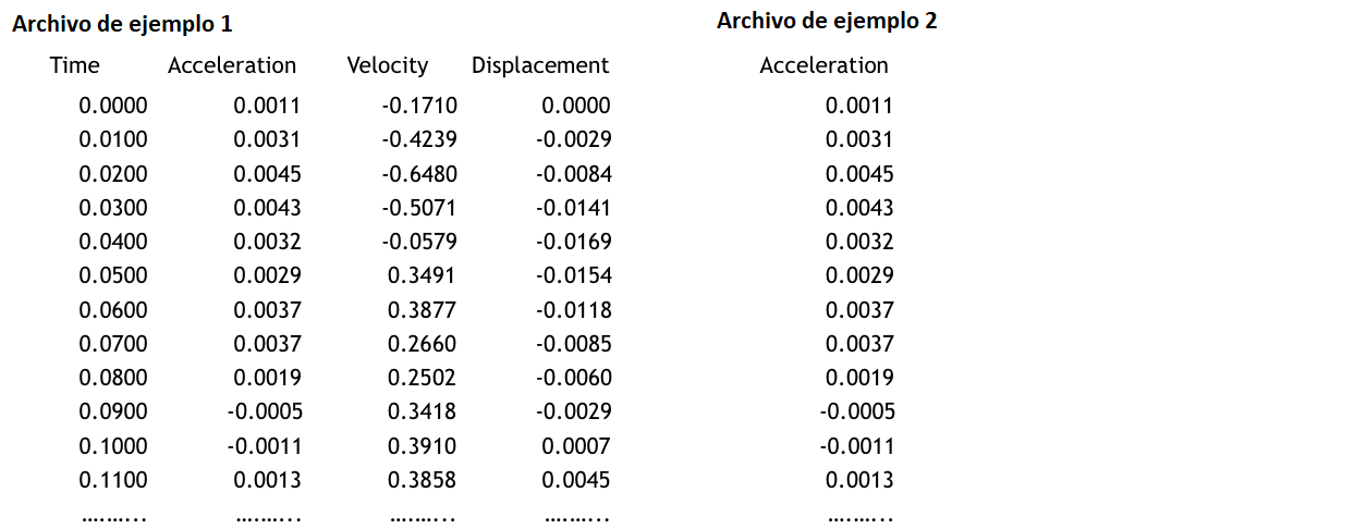 acelerogramas guardados en este tipo de formato de múltiples valores
