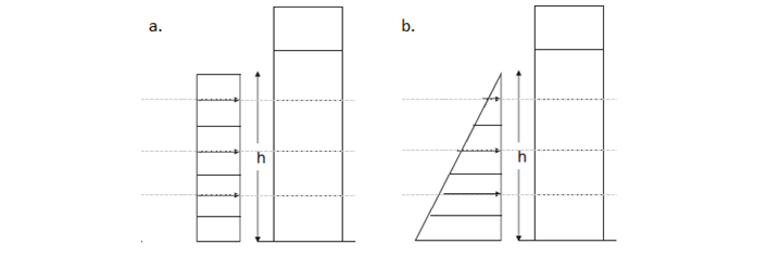Patterns of Total Tsunami Force distribution along the height of the building: a. Uniform Distribution and b. Triangular distribution after Petrone et al. [2017].