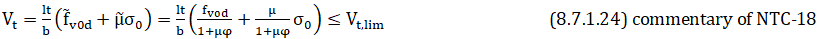 En NTC-18 y para mampostería reforzada RM, la capacidad de corte se calcula de acuerdo con §7.8.3.2.2 NTC2018: