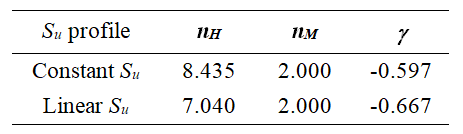 Los parámetros de la superficie delimitadora son fijos para cada uno de los perfiles de resistencia del suelo y se muestran en la Tabla 3. El valor límite δLim es un parámetro relacionado con la convergencia numérica y varía entre 0.01 y 0.2, con un valor predeterminado de 0.1.