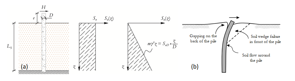 Θεωρείται μια κοιλότητα κορεσμένου εδάφους και, μετά από σεισμική κίνηση, θεωρείται ότι είναι αδιαπέραστη. Συνεπώς, το έδαφος θεωρείται ότι βρίσκεται σε αστράγγιστες συνθήκες δεδομένου ότι ο στόχος του μακροστοιχείου είναι να προσομοιώσει την απόκριση του πασσάλου υπό σεισμικές κινήσεις, ή βραχυπρόθεσμα ανακυκλιζόμενα φορτία, και το κριτήριο αστοχίας Tresca θεωρείται έγκυρο. Το σχήμα (a) αντιπροσωπεύει δύο απλουστευμένα γεωτεχνικά σενάρια, σε αστράγγιστες συνθήκες κατανομή διατμητικής αντοχής (Su) κατά μήκος του βάθους της κοιλότητας: σταθερή ή γραμμική. Το Σχήμα (b) απεικονίζει την χαρακτηριστική απόκριση εδάφους για πλευρική φόρτιση μακρύ πασσάλου, δηλαδή: μια παθητική αστοχία σε σφηνοειδές σχήμα σε μικρά βάθη και αστοχία διαρροής σε μεγαλύτερα βάθη, με πιθανό σχηματισμό κενού πίσω από το πάσσαλο.