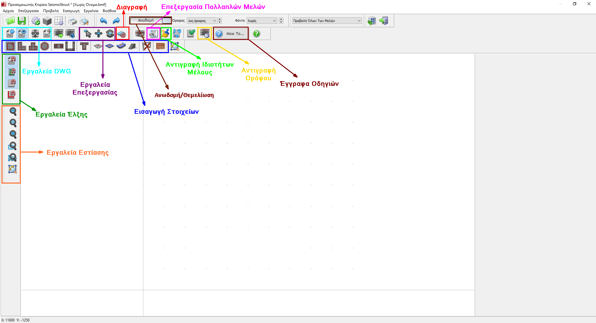 - Διαφορετικοί τύποι στοιχείων μπορούν να χρησιμοποιηθούν για την προσομοίωση υποστυλωμάτων/δοκών και τοιχίων. Για λεπτομέρειες σχετικά με τον ορισμό τους οι χρήστες μπορούν να ανατρέξουν στις Ειδικές Ρυθμίσεις του Προσομοιωτή Κτιρίου.