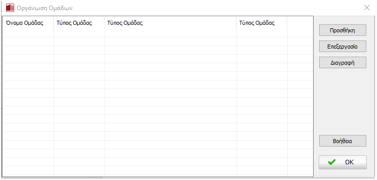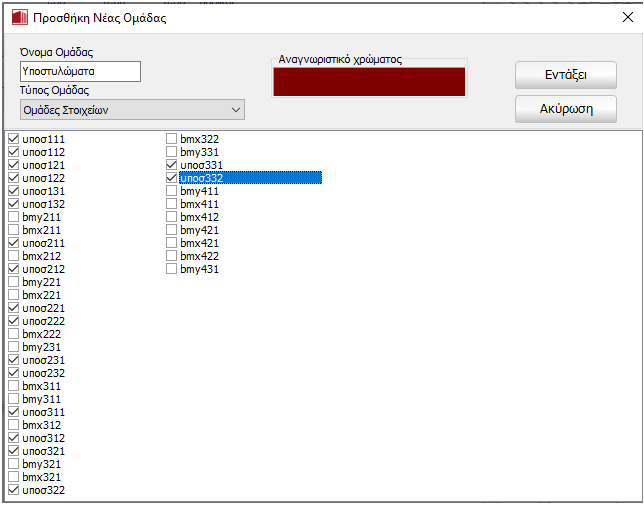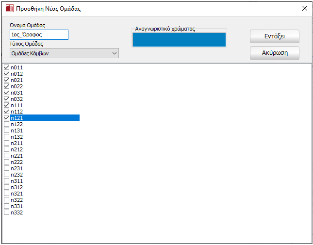 Σημείωση: Η λειτουργία των Ομάδων είναι ιδιαίτερα χρήσιμη για την επιλογή κόμβων και στοιχείων στην ενότητα της εξαγωγής αποτελεσμάτων, ώστε να μειωθεί το μέγεθος των αρχείων εξαγωγής και να επιταχυνθούν οι διαδικασίες επεξεργασίας των αποτελεσμάτων.