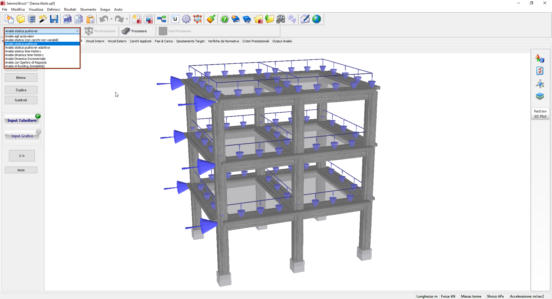 Attualmente in SeismoStruct sono disponibili dieci diverse tipologie di analisi: