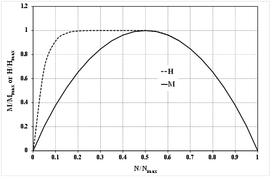 La bounding surface impiegata in questo macro-elemento dipende del tipo di suolo e dalle condizioni di drenaggio durante l’evento sismico. Perciò sono condierate diffenti bounding surface per condizioni drenate e non drenate. La supericie di rottura impiegata per descrivere il comportamento drenato corrisponde alla forma cosiddetta “rugby-ball”, mentre per carico non drenato la superficie di rottura corrisponde alla forma cosidetta “scallop”, che è rappresentata nella figura sottostante in termini di intersezione nei piani di carico H-N e M-N. La forma “rugby-ball” corrisponde ad una superficie di rottura rappresentata dalla linea continua (figura sottostante) in entrambi i piani di carico.