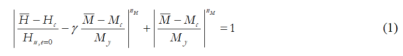 Gli esponenti positivo nH e nM controllano la curvatura ai lati della superellisse. La figura sottostante mostra la configurazione distorta della superellisse, centrata nell’origine (Hc = Mc = 0), con i parametri calibrati per rappresentare la superificie di rottura per profilo Su lineare.