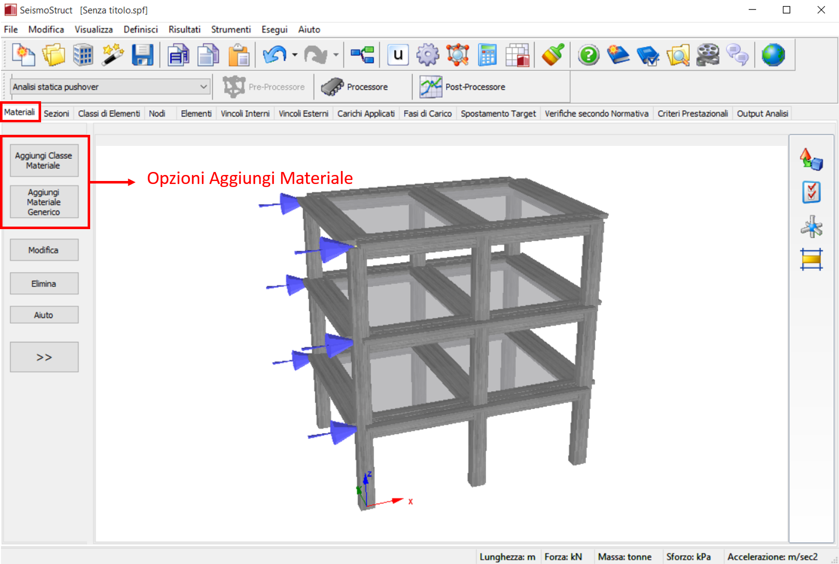 Attualmente in SeismoStruct sono disponibili ben venti tipi di materiali.