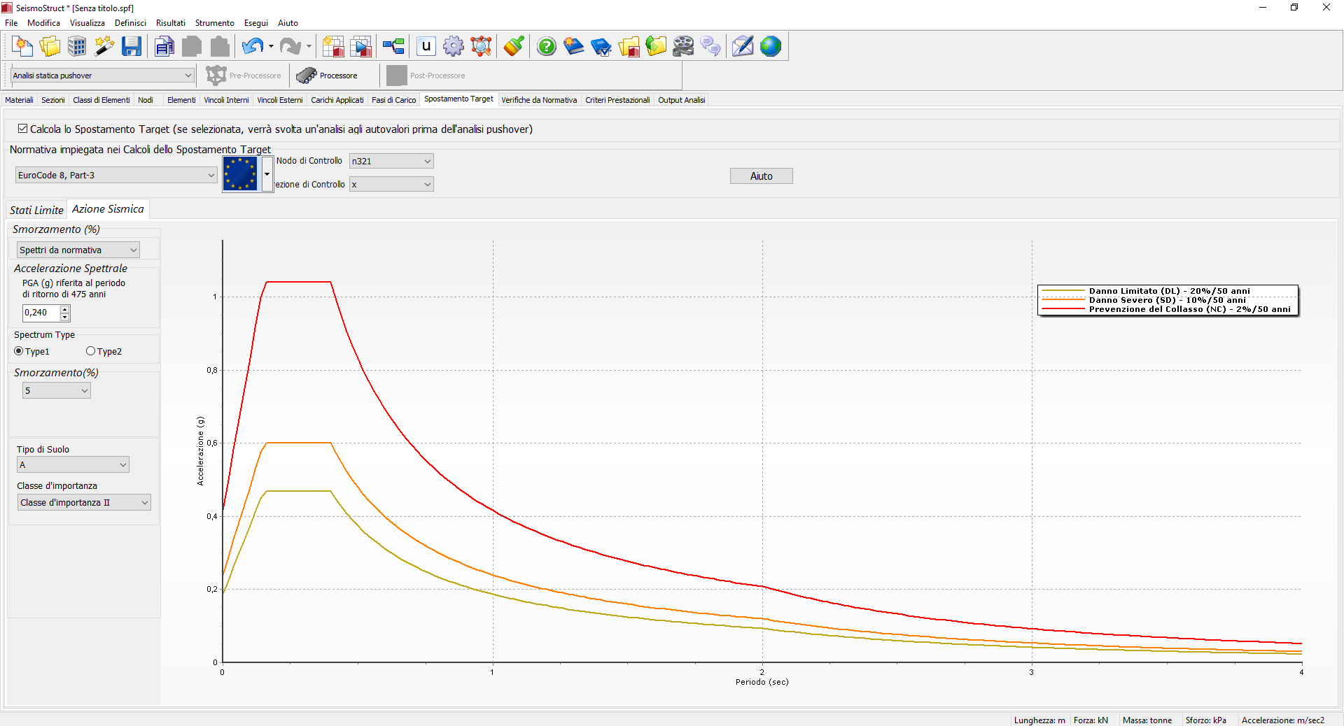 - Gli Stati Limite (o Livelli Prestazionali nel nel caso di ASCE 41-23 e TBDY o gli Obiettivi Prestazionali nel caso del KANEPE), per i quali si intende calcolare lo Spostamento Target;