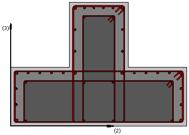 Questa sezione è frequentemente adottata per la modellazione di pilastri ad L in cemento armato che sono stati rinforzati su 3 lati con incamiciature in c.a. (placcaggi con piatti di acciaio o con fogli di tessuto FRP possono essere modellati utilizzando gli opportuni materiali). È contemplata la possibilità di definire diversi livelli di confinamento per il calcestruzzo interno (pre-esistente) e per quello esterno (nuovo).