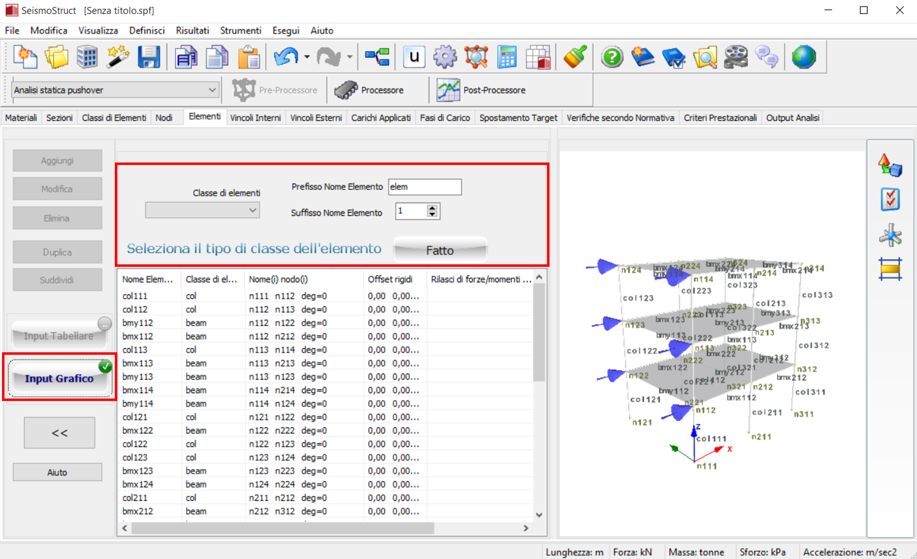 L'utente può aggiungere nuovi elementi anche attraverso il pulsante di Input Grafico. In primo luogo è necessario selezionare il tipo di Classe, poi i nodi corrispondenti, come illustrato nei passi seguenti: