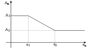 A1'in yüzdesi olarak tanımlanır. Dolgu panelin çatlaması nedeniyle, yatay ve dolayısıyla eksenel yer değiştirmeler arttıkça, çerçeve ve dolgu arasındaki temas uzunluğunun azalmasının hesaba katılmasını amaçlar. Sonuç olarak, eşdeğer çubuk alanı etkilenir. Alanın eksenel birim şekil değiştirmenin bir fonksiyonu olarak doğrusal olarak değiştiği varsayılır (bkz. alttaki figür); bu değişmenin gerçekleştiği iki birim şekil değiştirme değeri yığma çubuk histeretik model'e girdi parametreleri olarak tanımlanır.