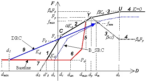 Bu modelde, zeminin düşey kuvvet-deplasman ilişkisi çok doğrulu eğri sistemiyle tanımlanır. İskelet eğrisinin ilk kısmı ilk rijitlik olan K0'a sahiptir. İkinci kısımda, Fc kuvvetinden itibaren Fy'ye olan oranıyla ifade edilir), rijitlik