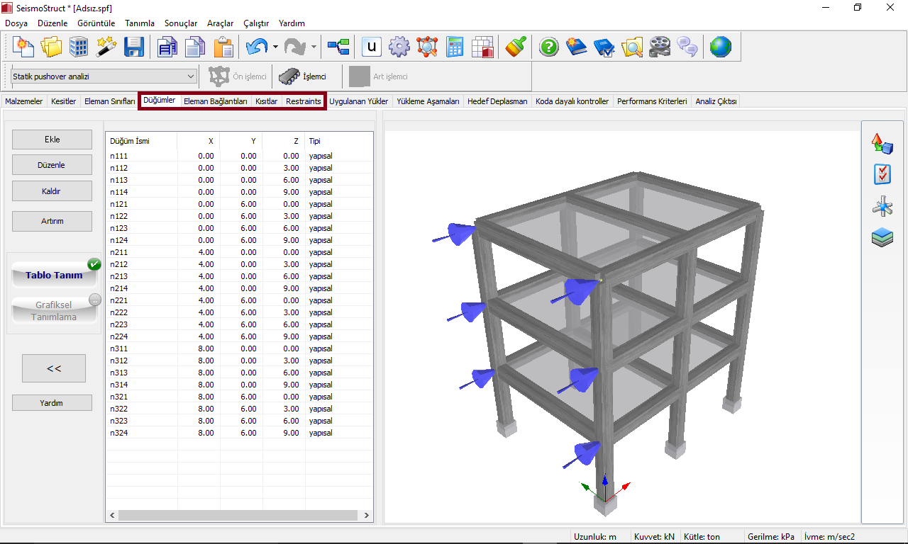 Not: SeismoStruct'ta bir modelde tanımlanabilen azami düğüm ve eleman sayısı 50000'dir.